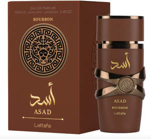 Asad Bourbon de Lattafa Perfumes es una fragancia de la familia olfativa Oriental Especiada para Hombres. Esta fragancia es nueva. Asad Bourbon se lanzó en 2025. Las Notas de Salida son lavanda, pimienta rosa y ciruela Mirabel; las Notas de Corazón son cacao, Davana y nuez moscada; las Notas de Fondo son vainilla Bourbon, ámbar y vetiver.