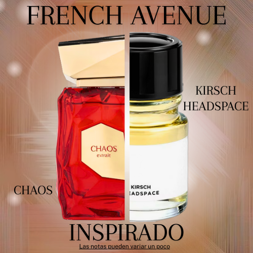 Chaos de French Avenue es una fragancia de la familia olfativa Cuero para Hombres y Mujeres. Esta fragrancia es nueva. Chaos se lanzó en 2025. Las Notas de Salida son cereza y Frutas rojas; la Nota de Corazón es iris; las Notas de Fondo son cuero, vainilla y musgo.
